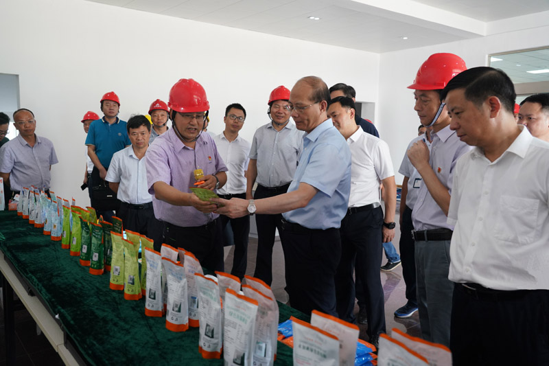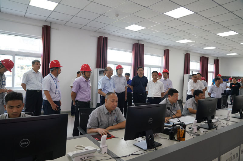 (党群工作部 徐波) 2019年7月25日下午,吴晓军副省长一行冒着炎炎烈日专程来到江盐集团下属zzxzls公司考察调研,省国资委党委委员、副主任郑德才,集团公司党委书记、董事长胡世平,党委委员、总经理张雅庭,樟树市委书记董小明,zzxzls公司党委书记、董事长刘青等陪同调研。