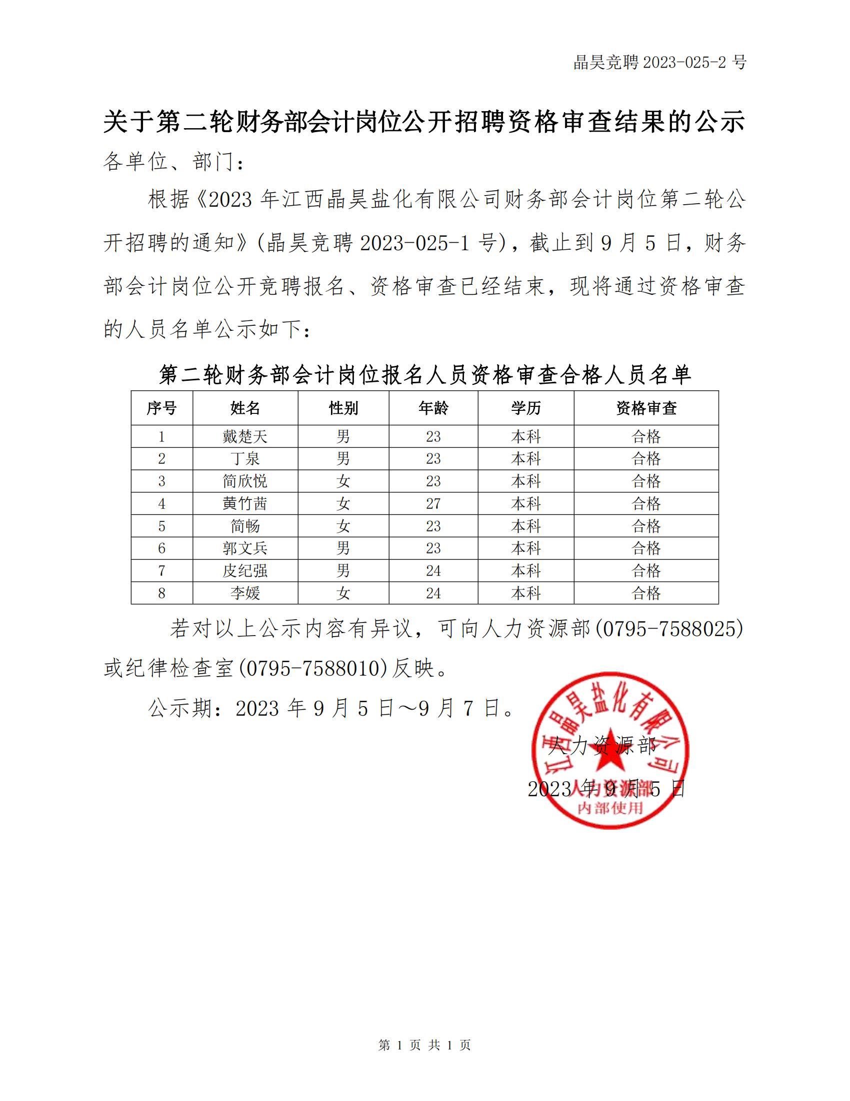 关于第二轮财务部会计岗位公开招聘资格审查结果的公示