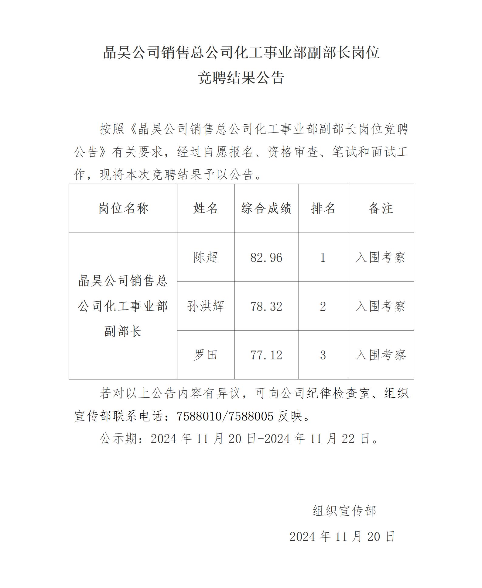 zzxzls公司销售总公司化工事业部副部长岗位竞聘结果公告