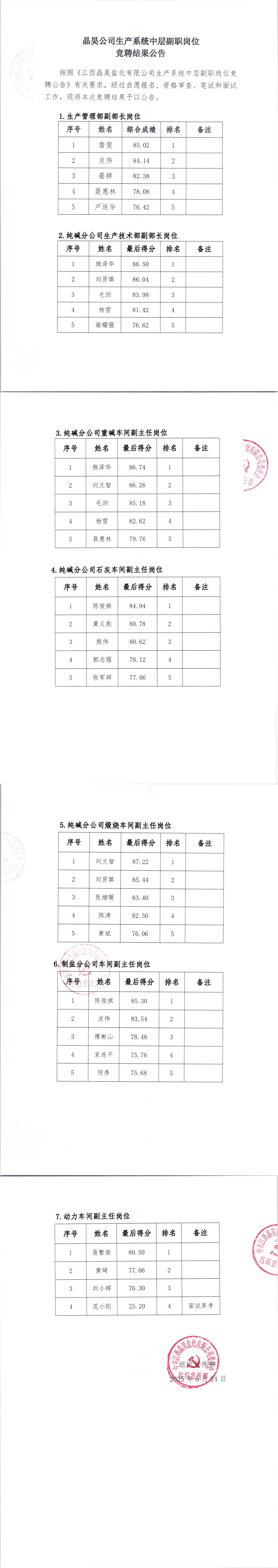 zzxzls公司生产系统中层副职岗位竞聘结果公告