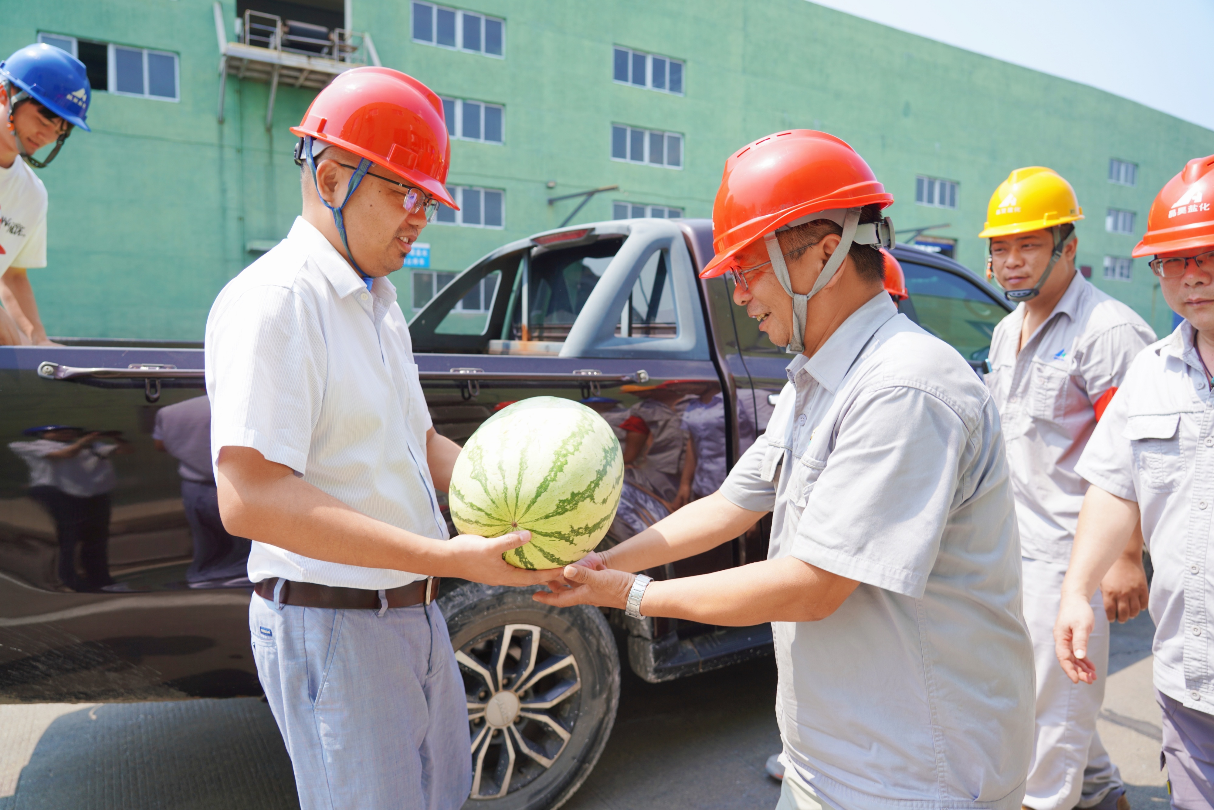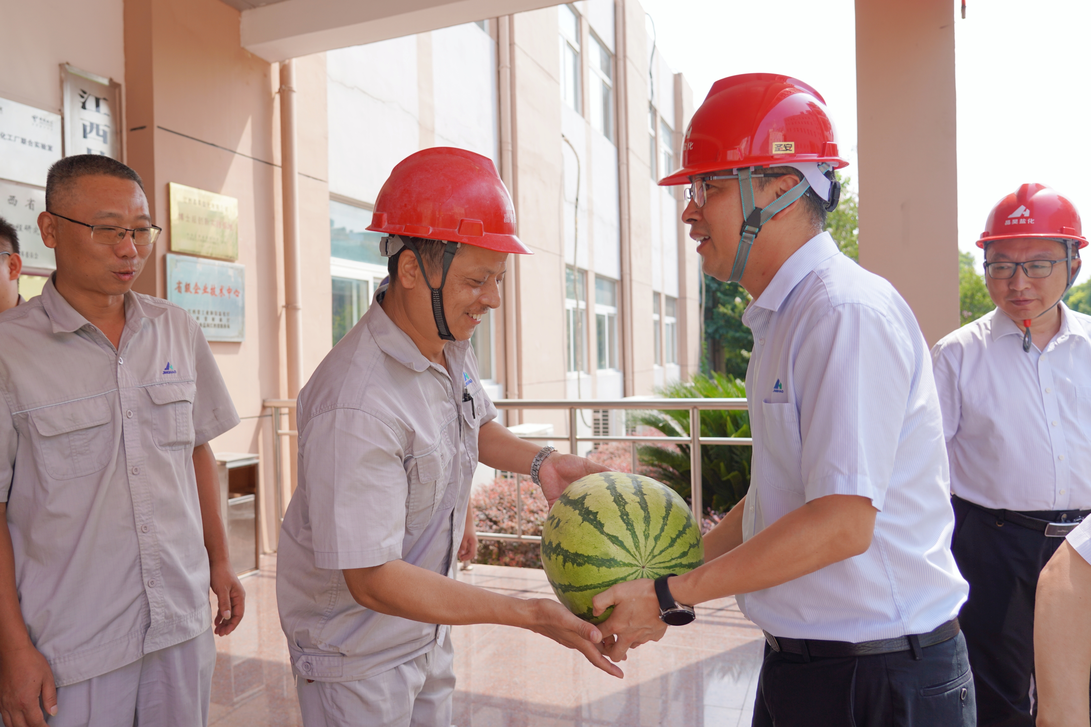 zzxzls公司党委书记、董事长徐晓峰一行首先来到中控楼。他亲切地与干部员工一一握手交谈,仔细询问大家的工作情况和身体状况,反复叮嘱:“高温天气下,安全生产是第一位的,大家一定要把防暑降温措施做到位,注意劳逸结合,保护好自己的人身安全。” 他亲手将甘甜多汁的大西瓜等慰问品送到员工手上,沉甸甸的西瓜传递的是公司对员工沉甸甸的关爱与支持,希望大家继续发扬奋斗精神,为公司高质量发展贡献力量。
