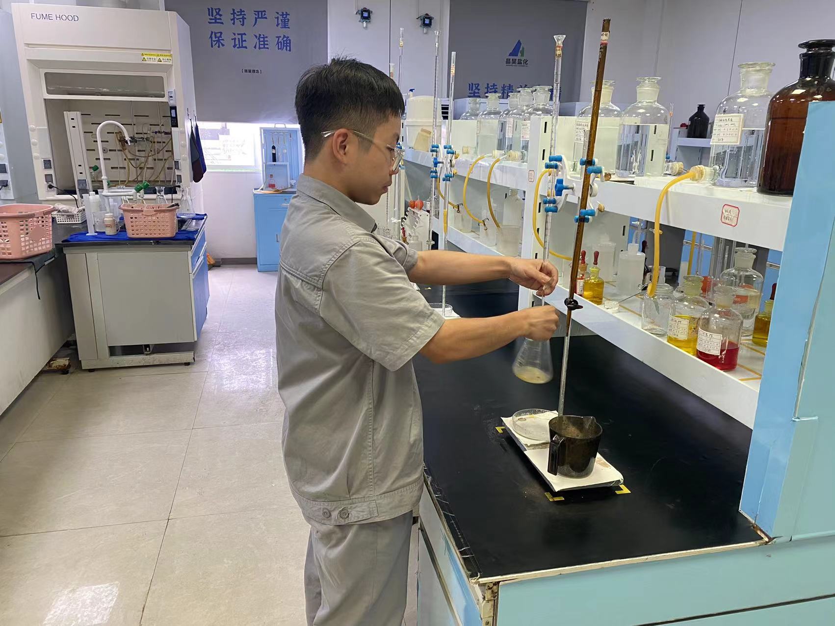 随着安全意识在心中筑牢根基,我怀着严谨的态度走进纯碱生产技术部的化验室,开启了倒班学习的旅程,这是将理论知识转化为实践技能的关键阶段,每一步都充满成长的意义。初入化验室,酸碱滴定管、各类指示剂、分光光度计、锥形瓶等仪器试剂映入眼帘,它们是我在校园实验室里的“老朋友”,每当目光触及,一股莫名的亲切感便悄然漫上心头,但在这里,它们却承载着截然不同的使命——监控生产质量,为生产流程“把关”。以往在校园,我仅需掌握这些仪器的基本操作方法;而在zzxzls化验室里的每一次规范操作,都不是孤立的举动,是与生产质量同频共振的重要环节,直接关系着每一批产品的品质底色:硫酸溶液搭配甲基橙指示剂,能精准测定重碱的百分含量与氨盐水中游离氨的浓度;硝酸银溶液与铬酸钾溶液配合,可准确检测精盐水、氨盐水中氯离子的含量。这些试剂借助离子反应、配位反应、平衡移动、特定波长光吸收等原理,化身生产线上的“火眼金睛”,默默守护着厂区生产的稳定运行。更让我深受触动的,是化验室师傅们的专业与敬业:他们会手把手指导我如何精准完成样品测定,耐心纠正操作中的细节偏差;面对异常数据,他们从不敷衍,而是反复核查、多次验证,直到找到问题根源。这份对工作的严谨与负责,如同春雨般滋润着我,让我在学习技能的同时,更学会了何为“工匠精神”。